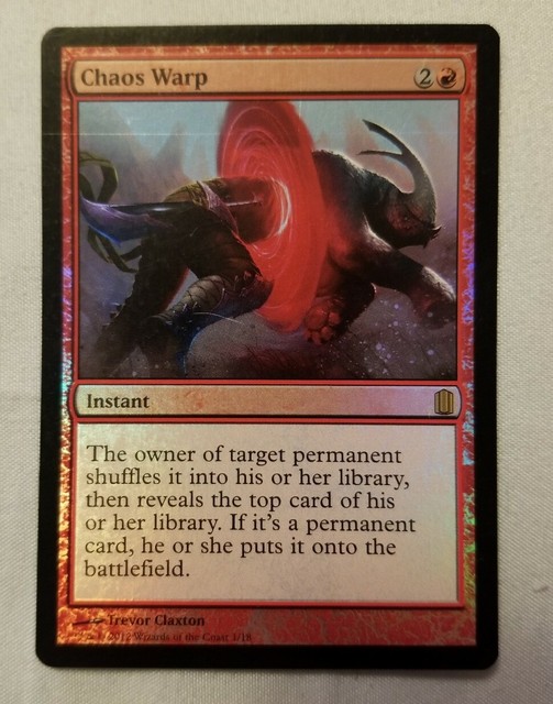 Chaos Warp On Commander. If it’s a permanent card, they put it onto the battlefield. Chaos warp works the same way as before. The owner of a token is the player under whose control the token was put onto the battlefield. Chaos warp will still have the commander's owner reveal the top card of their library and put it on the battlefield if it is a permanent, and oblation will still have the commander's owner draw two cards. Ships from and sold by super games inc. If a token is shuffled into a player’s library this way, that player shuffles before revealing the top card of that library. If it's a permanent card, they put it onto the battlefield. If it's a permanent card, they put it onto the battlefield. #anguished unmaking, #assassins trophy, #beast within,. Chaos warp (2r) instant the owner of target permanent shuffles it into their library, then reveals the top card of their library. 6 level 1 · 6y you'll target the commander. If the permanent is an illegal target by the time chaos warp tries to resolve, it won’t resolve and none of its effects will occur. The updated rules only change how to handle a commander going to the graveyard or exile. If it's a permanent card, they put it onto the battlefield. The owner of target permanent shuffles it into their library, then reveals the top card of their library.